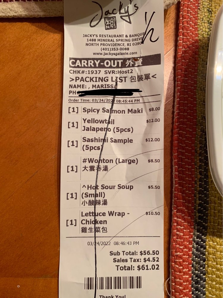 Jacky's Galaxie Restaurant in North Providence, RI offers a diverse menu featuring Chinese, Thai, and sushi options. Known for its trendy and upscale ambiance, the restaurant provides a range of utilities, including delivery, takeout, and catering services. Customers praise the delicious seafood rice, crispy Thai wings, and sushi offerings. The establishment's consistency in quality, attentive service, and fresh ingredients have garnered positive reviews. Among the standout dishes are the chicken noodle rice soup and the steak tips. With a full bar, outdoor seating, and happy hour specials, Jacky's Galaxie is a popular choice for a casual lunch or dinner. Whether it's the flavorful dumplings or the refreshing seaweed salad with mango and salmon, this restaurant promises a satisfying dining experience for all.
