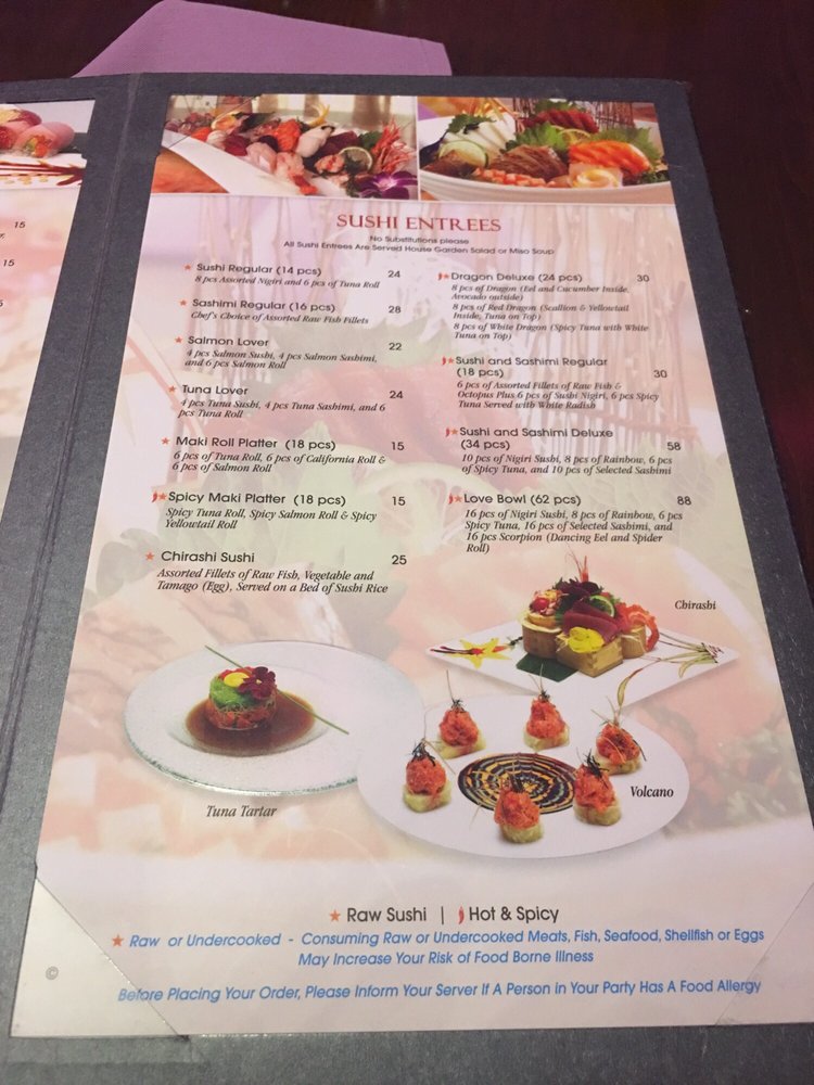 pcs tuna sushi, pcs tuna sashimi, and pcs tuna roll.
