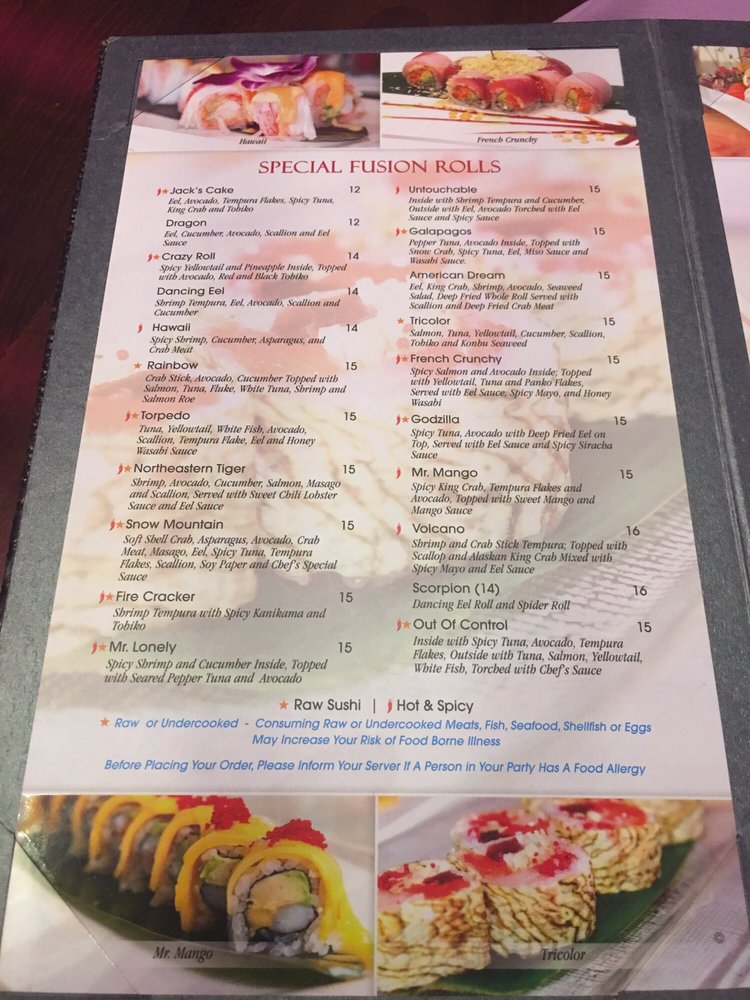 Raw or undercooked. dragon rainbow, hawaii, snow white, firecracker, american dream tiger, mr. mango french crunchy.