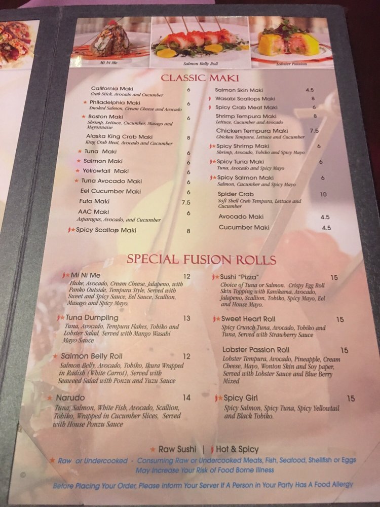 raw or undercooked. . california. boston. philadelphia, avocado, cucumber, sweet potato, tuna salmon yellowtail. tuna avocado teel cucumber, spicy shrimp california spicy. spicy salmon spicy tuna spicy yellowtail